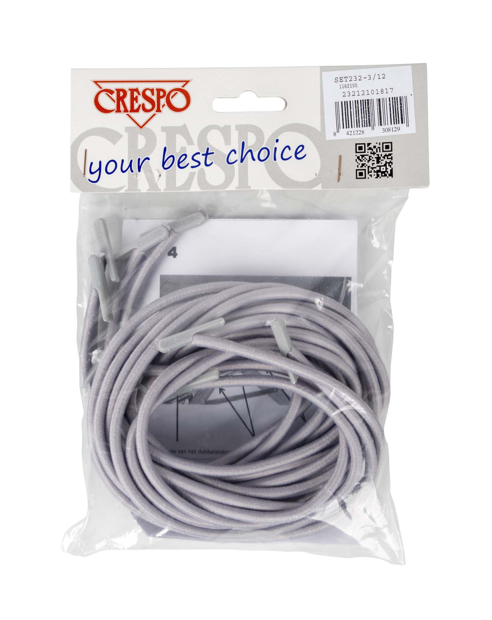 Crespo - Elastiek - Relaxstoelen - 2x Kort - 2x Lang Crespo - Elastic - Reclining - 2x Short - 2x Long - Grey Een set voor het vervangen van elastieken van een Crespo relaxstoel. Eenvoudig te vervangen. Een set bestaat uit 2x een lang elastiek en 2x een kort elastiek. Voorzien van eindstukjes, zodat het elastiek zich vast zet. Elastiek voor Crespo relaxstoelen. Zorgt voor optimaal comfort. Eenvoudig te vervangen. Set van 4 stuks. Grijs. S