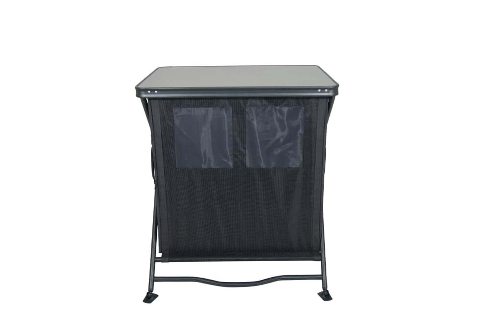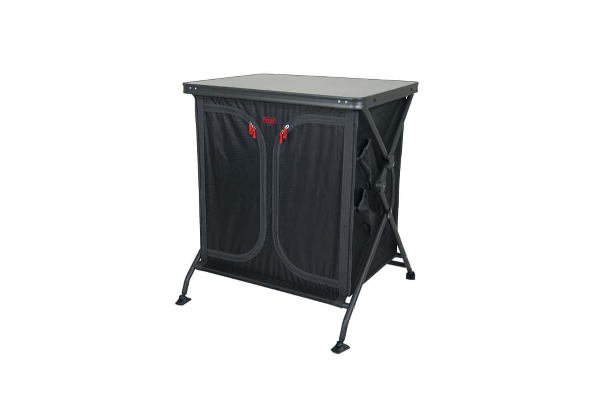 Een stevige kookkast met 2 vakken en legplanken. Eenvoudig op te zetten. De kookkast beschikt over een hittebestendig en watervast melamine oplegblad en een zwart aluminium frame. De verstelbare poten met stabilisatoren zorgen ervoor dat de kookkast op iedere ondergrond stabiel staat.