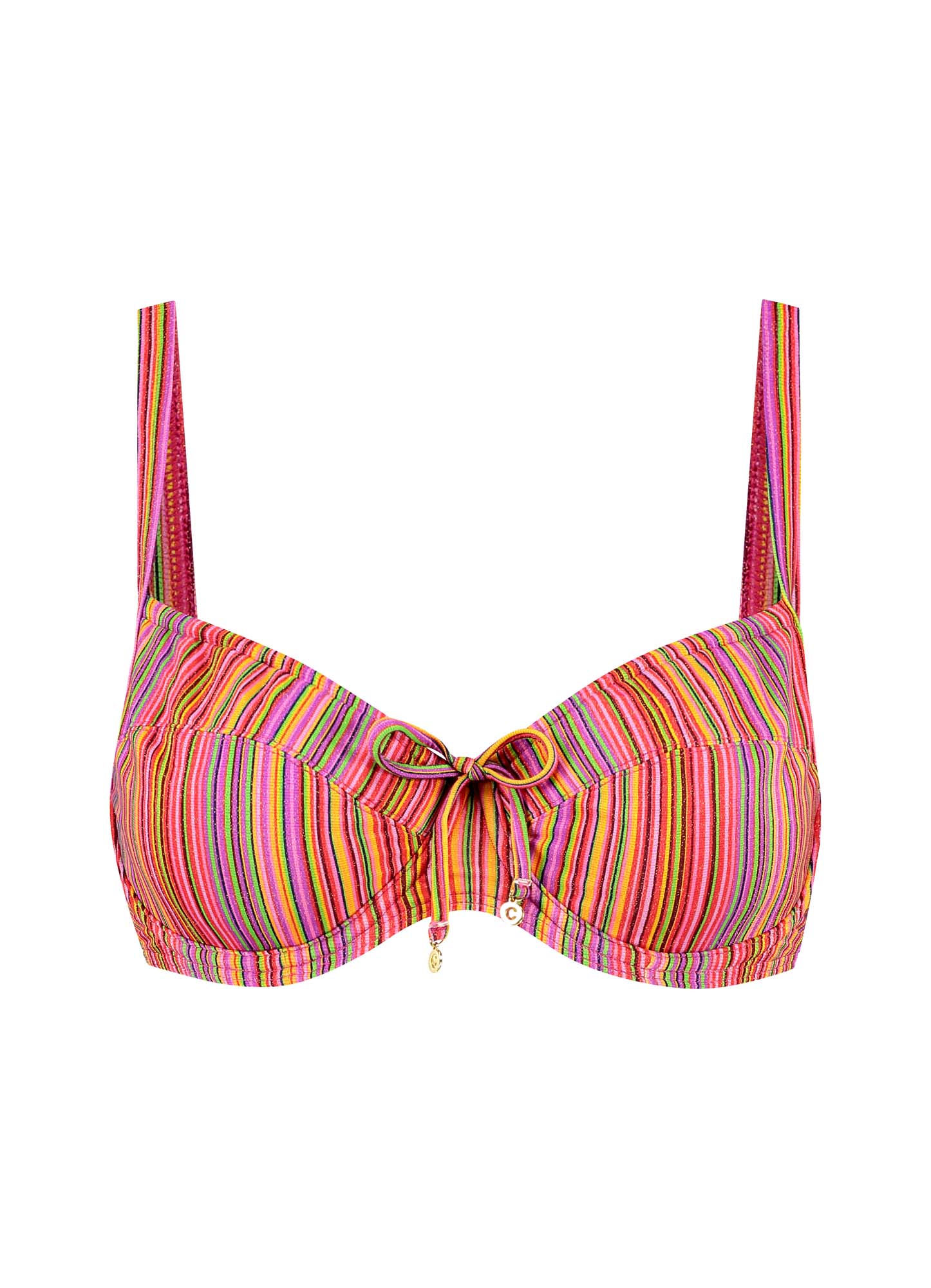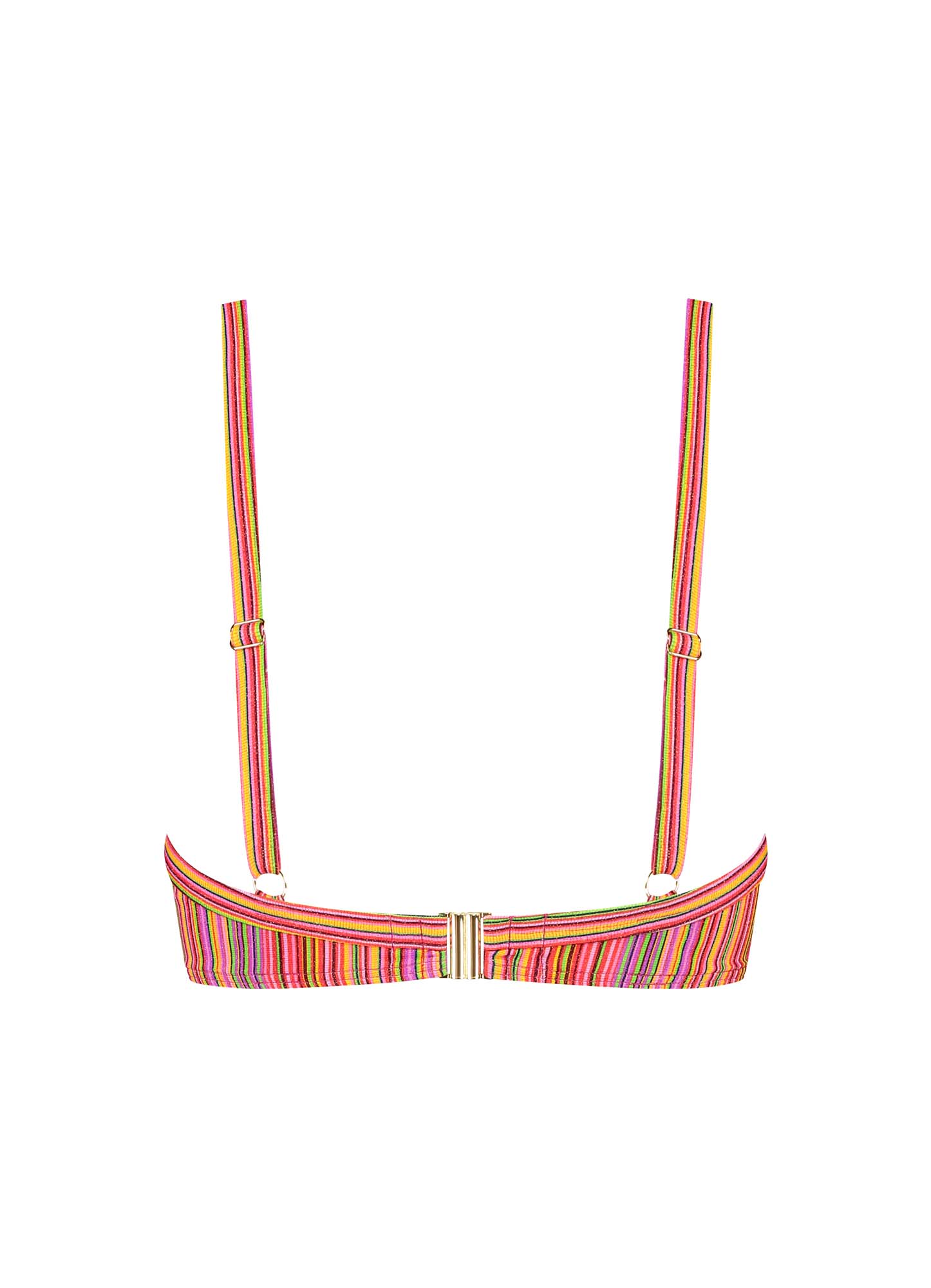 De Cyell Color Juice Beugel Bikinitop biedt stevige ondersteuning en een vrolijke uitstraling. De top heeft beugels en licht voorgevormde cups die zorgen voor een mooie pasvorm en goede steun. Dankzij de verstelbare schouderbandjes en de rugsluiting stem je de pasvorm eenvoudig af op jouw lichaam. De kleurrijke print geeft de top een zomerse en speelse look.