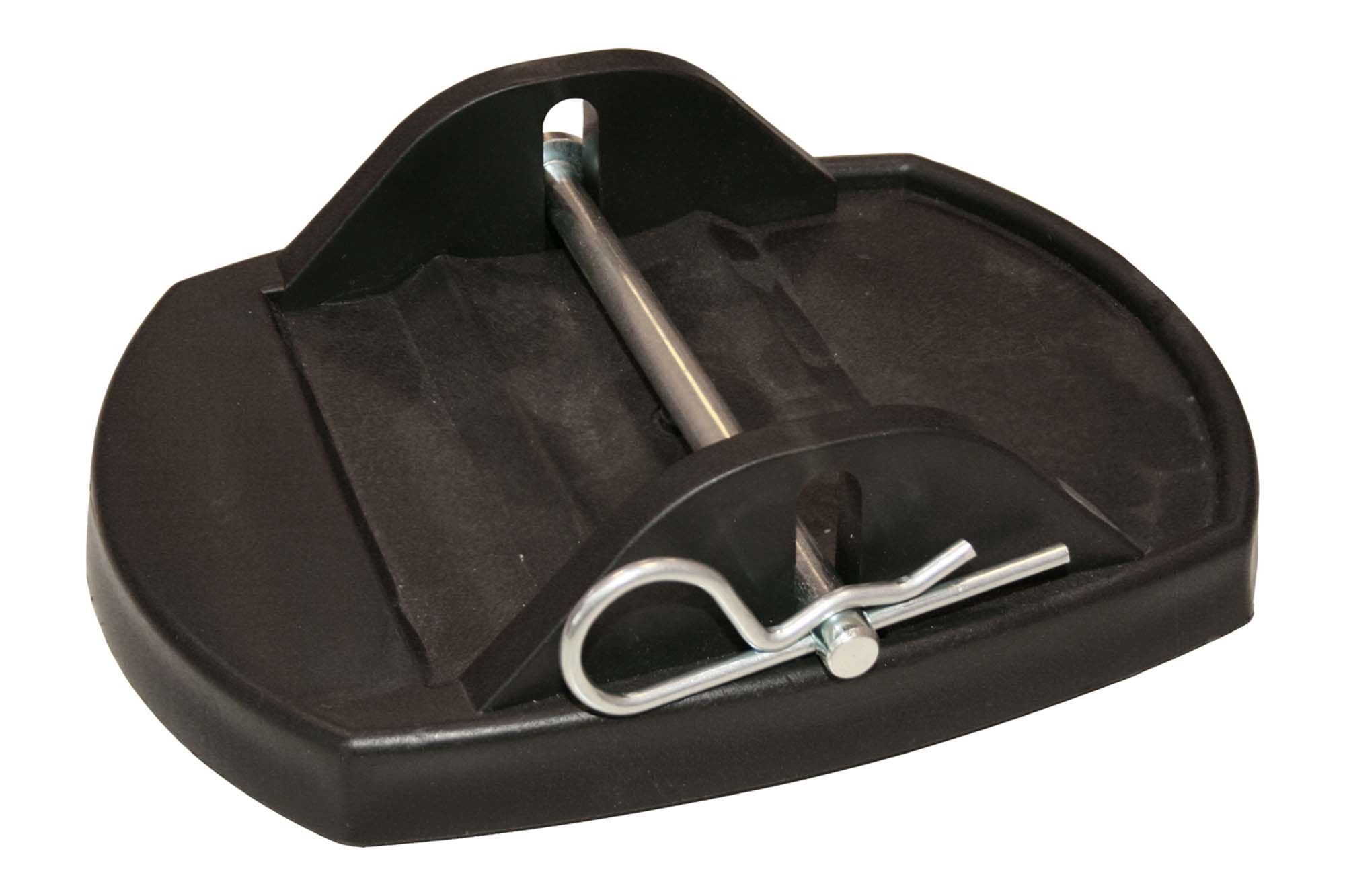 Onderplaat voor uitdraaisteun, 4 stuks , zware uitvoering en voorzien van stalen pen met beveiliging , snel en eenvoudig te monteren , ook voor zware uitdraaisteunen , met insektengoot. Dimensies: LxBxH 177x142x45mm