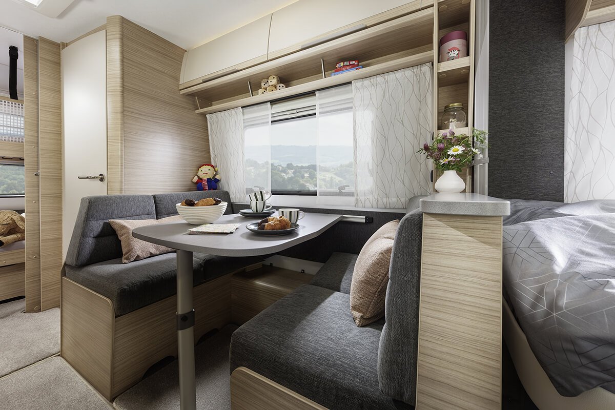 Ruim en Functioneel: Deze caravan is ontworpen om optimaal gebruik te maken van de beschikbare ruimte, met slimme opbergoplossingen en een ruime indeling die zowel comfortabel als functioneel is.