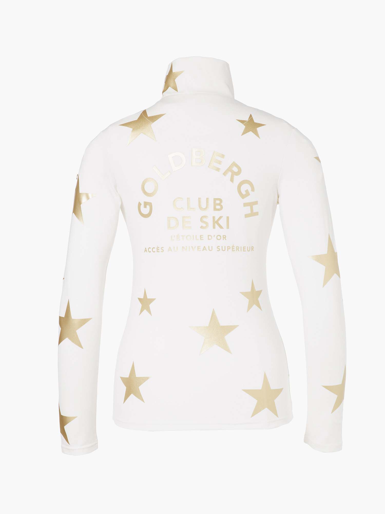 Deze stijlvolle powerstretch top is perfect voor wie comfort en een opvallend design wil combineren. Gemaakt van powerstretch interlock met een zachte geborstelde achterkant, biedt de top ultiem draagcomfort en flexibiliteit. De nauwsluitende kraag en lange lengte met ½ rits zorgen voor een elegante en functionele pasvorm. De all-over sterrenprint geeft de top een speelse en moderne uitstraling, terwijl het metalen merkembleem op de bovenmouw een luxe finishing touch toevoegt. Een veelzijdig item dat zowel sportief als casual gedragen kan worden!