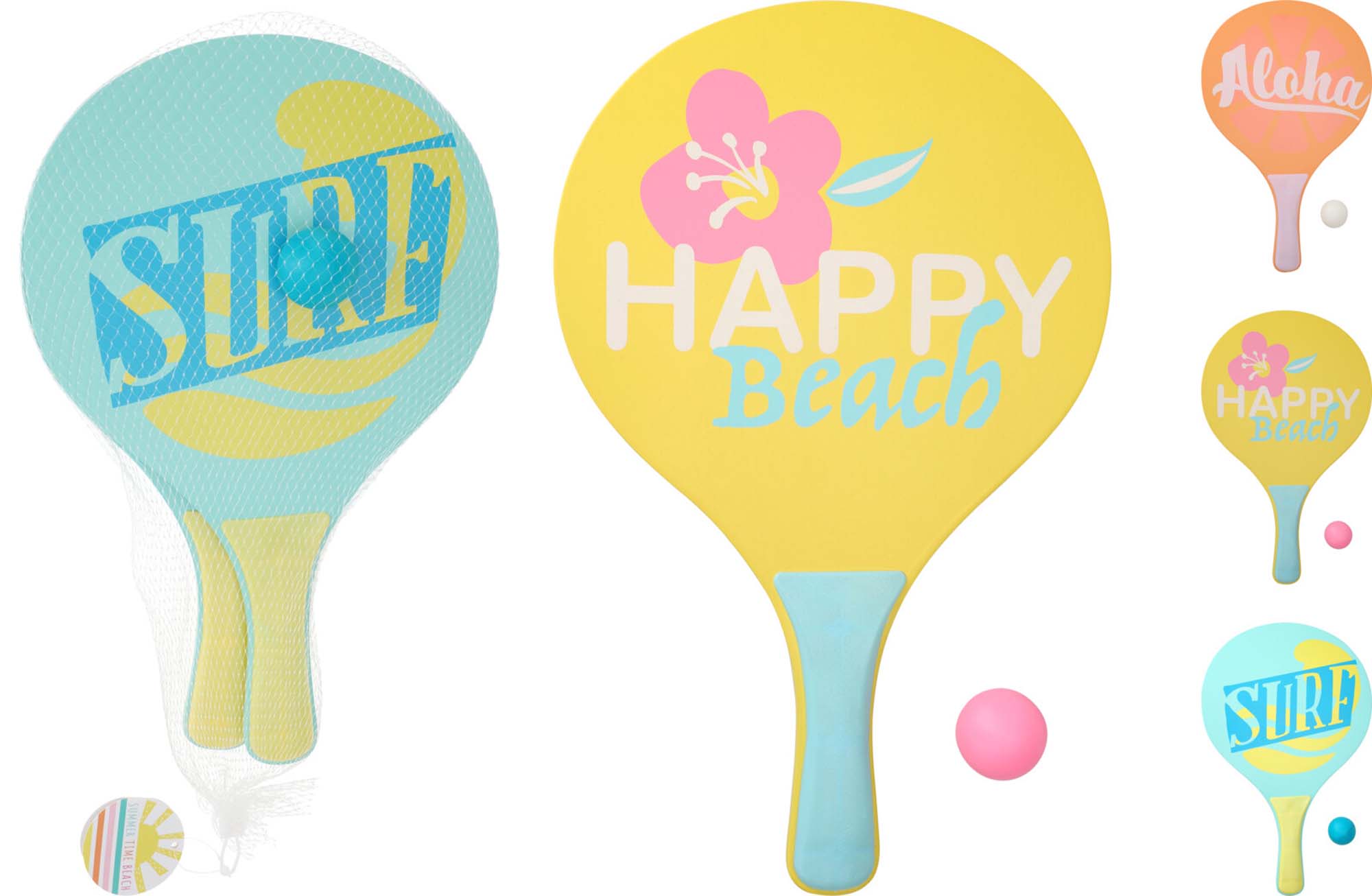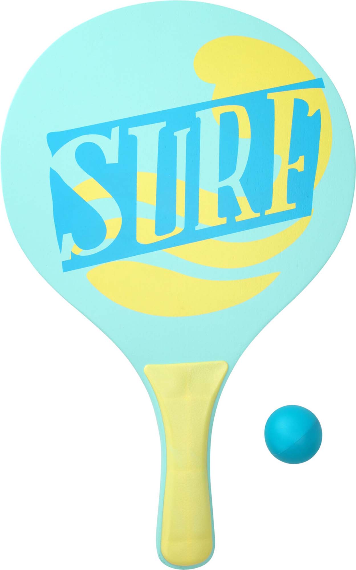 Een strand ping pong setje, bestaande uit twee batjes en een balletje.