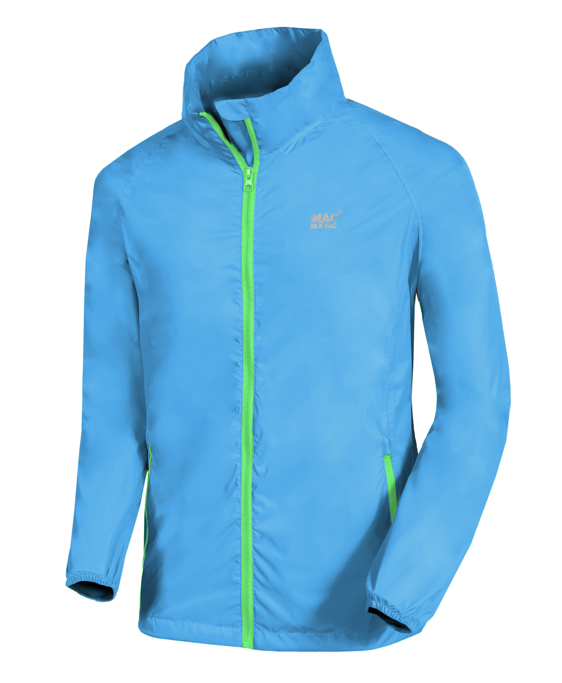 Je kunt je afvragen wie er blij is met regen, behalve boeren na een periode van droogte. Waarschijnlijk de drager van deze blauwe neon Mac in a Sac. Opvallend en vrolijk met die groene rits. Mac in a Sac is een makkelijk lichtgewicht ademend polyester regenjack met een uniek "staycool" systeem aan rugzijde voor extra comfort.