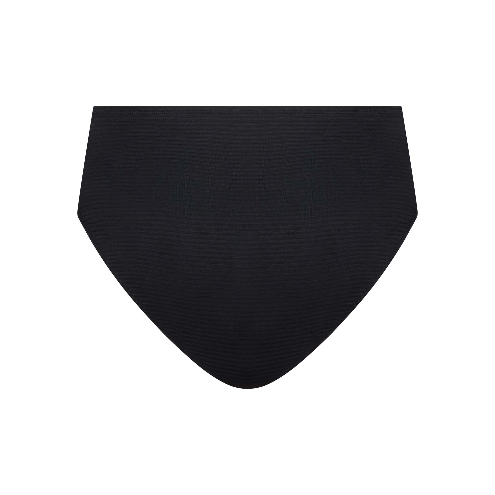 Deze bikini bottom is ontworpen met een normale taillehoogte die net onder de heupen valt. Het model heeft hoge beenuitsnijdingen voor een optisch langer silhouet en een breder achterpand voor extra bedekking. De volledige voering zorgt voor een comfortabele en stabiele pasvorm. Voorzien van een stijlvol gespdetail voor een subtiele, moderne touch.