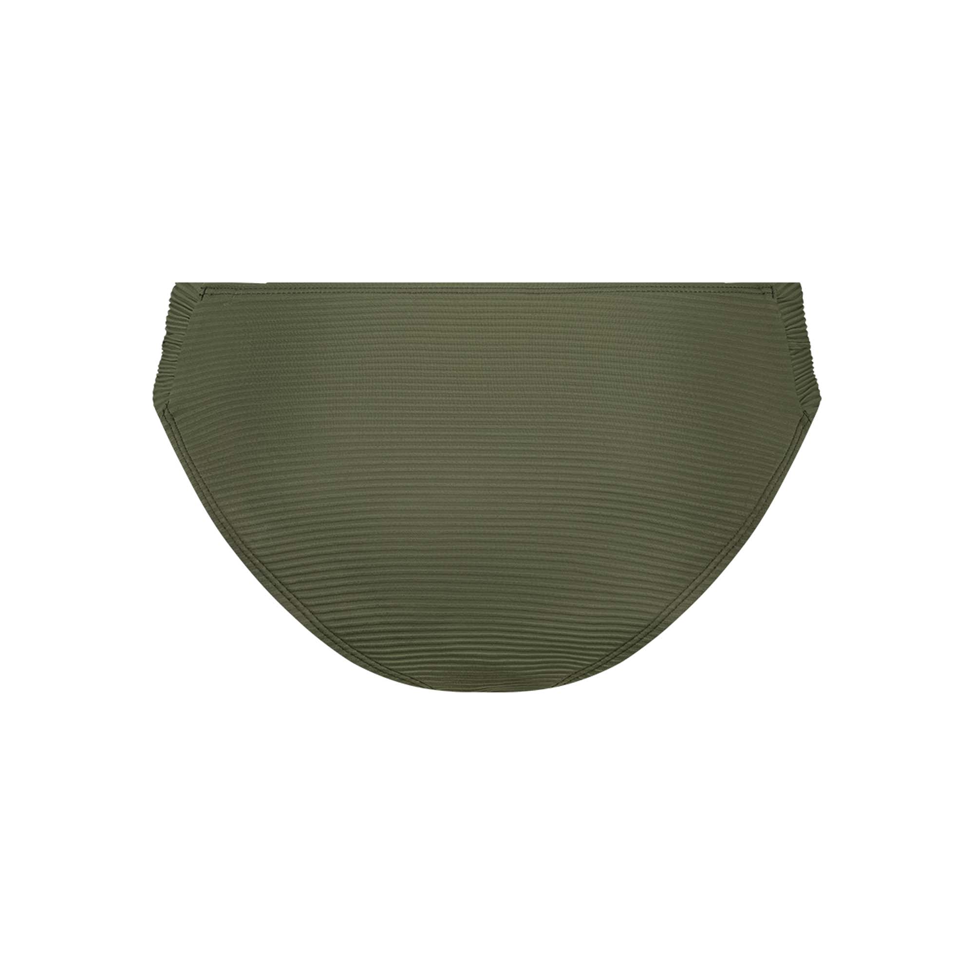 Dit bikinibroekje is voorzien van geplooide zijpanden die de heupen flatteren en een comfortabele pasvorm bieden. Het model heeft een iets smallere achterkant voor een verfijnde uitstraling, met voldoende bedekking. De dubbele stof zorgt voor extra stevigheid en draagcomfort.