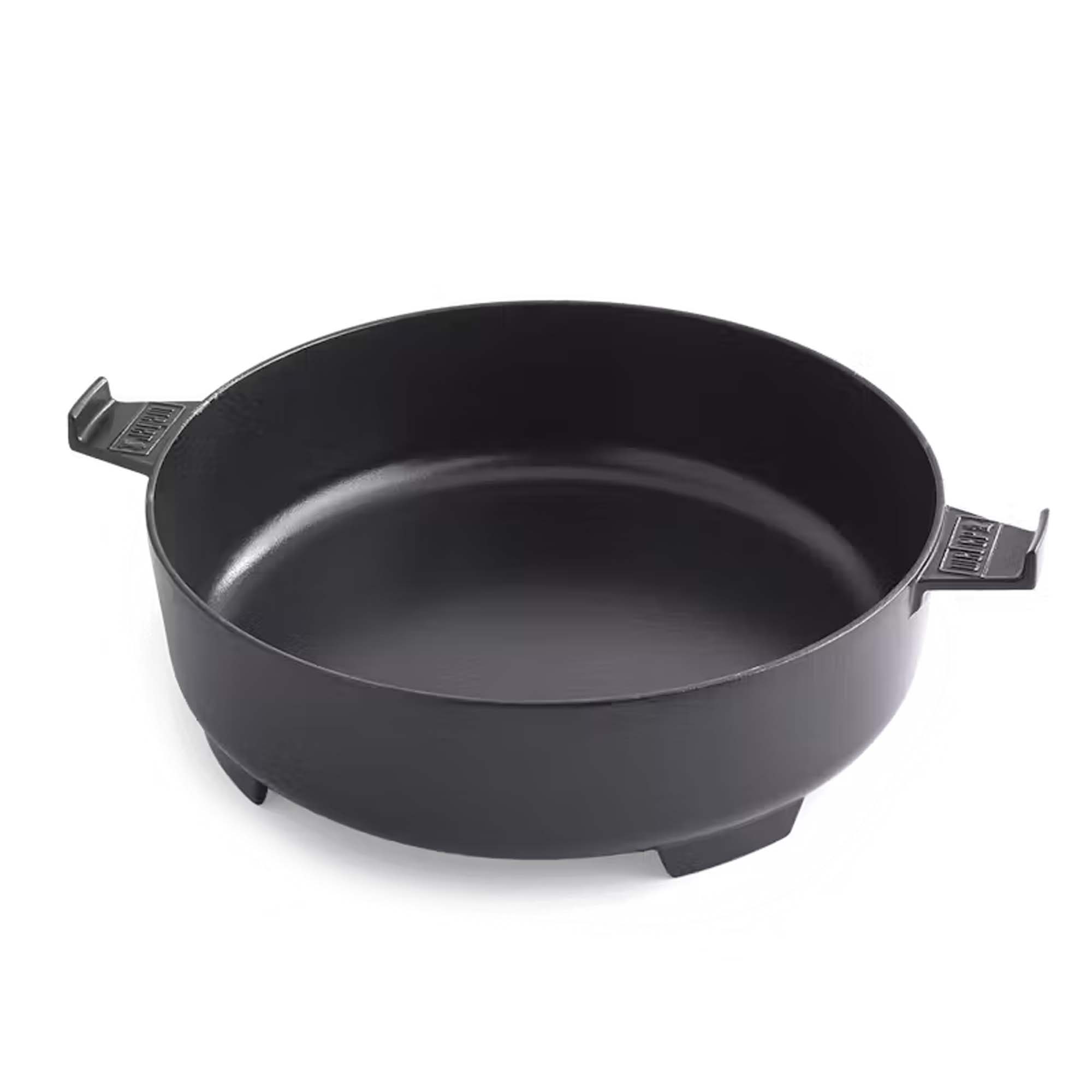 Dit veelzijdige kookgerei biedt eindeloze mogelijkheden voor op de barbecue. De gietijzeren Dutch Oven van 6,8 liter biedt een gelijkmatige warmteverdeling en -behoud voor malse braadstukken en smakelijke soepen en stoofschotels. Het deksel met dubbele functie kan worden gebruikt als platte bakplaat om broodjes te roosteren of kippenborst en groente perfect te garen. Dankzij de porselein-geëmailleerde finish is de Dutch Oven makkelijk schoon te maken en de twee onderdelen kunnen perfect op elkaar gestapeld worden voor plaatsbesparend opbergen.